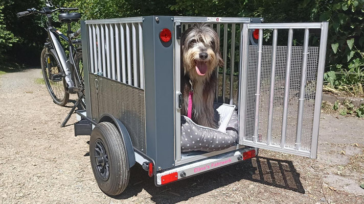 Auf Basis der zig-hundertfach bewährten Fahrrad-Rollstuhl- und Personenanhänger stellt Elina's Fahrwerk auch diverse einzigartige, besondere und hochstabile Trailer für meist große bis sehr große und/oder sehr lebhafte Hunde her.